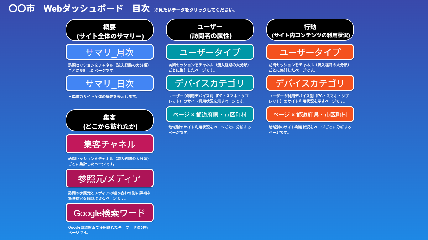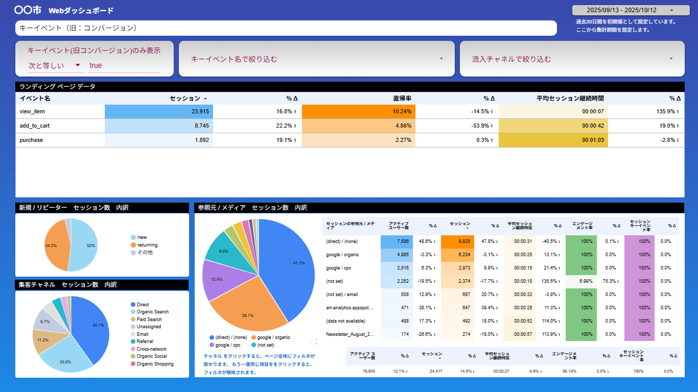 GA4・広告・SNSなど、分散したデータの管理にお悩みではありませんか?自治体のマーケティングをもっとシンプルに。職員と支援事業者が共通のダッシュボードで同じ指標を見ながら改善を進められる仕組みを紹介します。